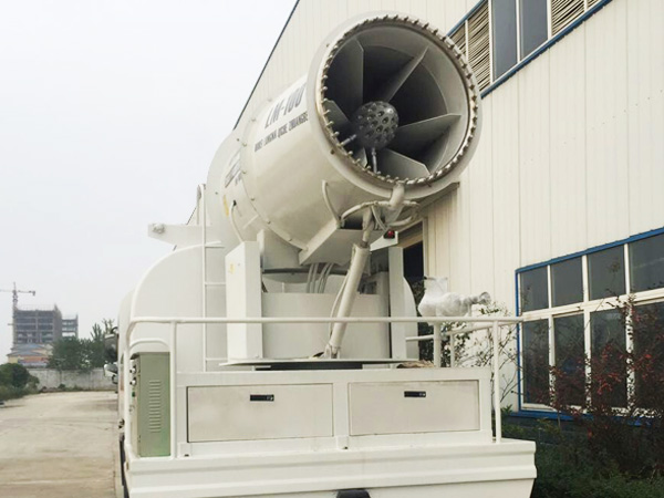 風送式噴霧機的原理是在液泵噴水后,利用風機將水噴灑出去,能噴灑120米遠、60米高,向天空噴灑水霧,達到抑制揚塵、綠化除塵等效果。這種霧炮正好治理治理PM2.5超標的最佳環保利器。施工運輸車輛、挖掘土方設備出工地前必須作除泥除塵處理,嚴禁將泥土、塵土帶出工地。這套裝置不但結構簡單,除塵覆蓋面大,除塵效果好,而且對水質要求低,可以直接利用雨水等回收水,從而大幅降低了投入成本。