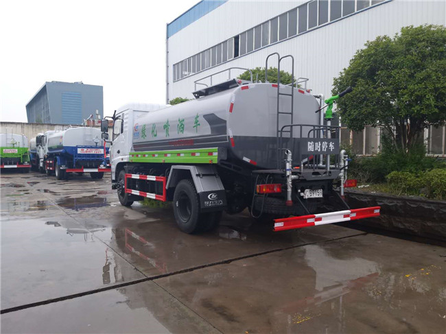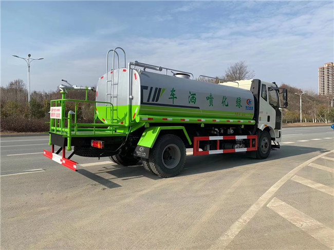 程力牌灑水車前噴頭位置較低,靠近地面,噴灑壓力較大,可用于沖洗路面;后噴頭位置較高(灑水車后噴頭一般左右各安裝一個),灑水面較寬,可用于公路施工灑水,使用后噴頭時,應將前噴管關閉;使用可調噴頭灑水時,灑水寬度可根據需要調整。灑水寬度越寬,中間重疊量越少,灑水密度越均勻。