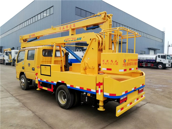 江鈴16米折臂式高空作業車底盤型號:JX1061TSG25,發動機型號JX493ZLQ5,功率85KW,(115馬力)雙排駕駛室,7.00鋼絲胎,油剎,五檔箱,前橋2噸,后橋3.5噸,帶排氣制動,原廠ABS。整車外形尺寸:7550*1980*3080上裝配置:液壓360度全回轉,三節折臂式,單液壓舉升缸,帶雙向平衡閥,電控操作舉升臂,1噸可伸縮式吊鉤,四支液壓油缸可調式支腿帶雙向液壓鎖(支腿操作為手動操作,可單獨控制)。左右警示燈,黃色車身,全車貼反光標識,雙人穩定作業斗,帶后防護,倆側防護,配一個移動工具箱。