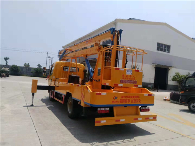 ★18米高空作業(yè)車(chē)隨車(chē)安裝四個(gè)液壓支腿,以保證整車(chē)在操作時(shí)的穩(wěn)定性與安全性。高空作業(yè)車(chē)選裝吊鉤,吊鉤吊1-1.5噸。高空作業(yè)車(chē)均可上下操作,360度全方位旋轉(zhuǎn),安裝手油門(mén)。