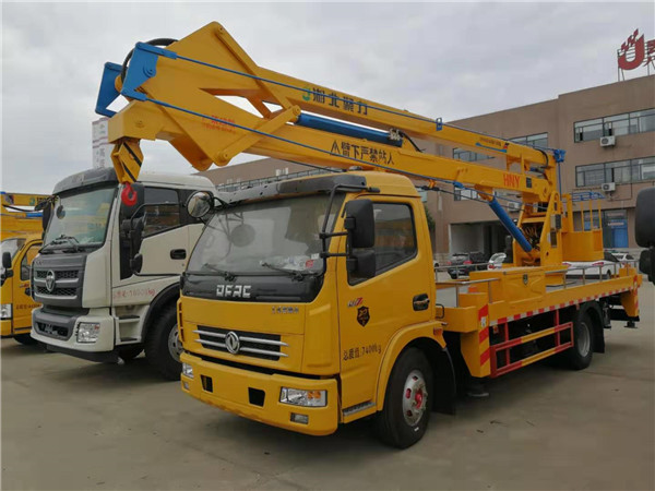 東風折臂升降高空作業車底盤配置:東風雙排黃色駕駛室,軸距3300mm,東風輕型102馬力,全柴115馬力,玉柴115馬力正宗國五發動機,油剎,2噸前橋,3.5噸后橋,帶方向助力,7.50R16尼龍胎。加裝空調。