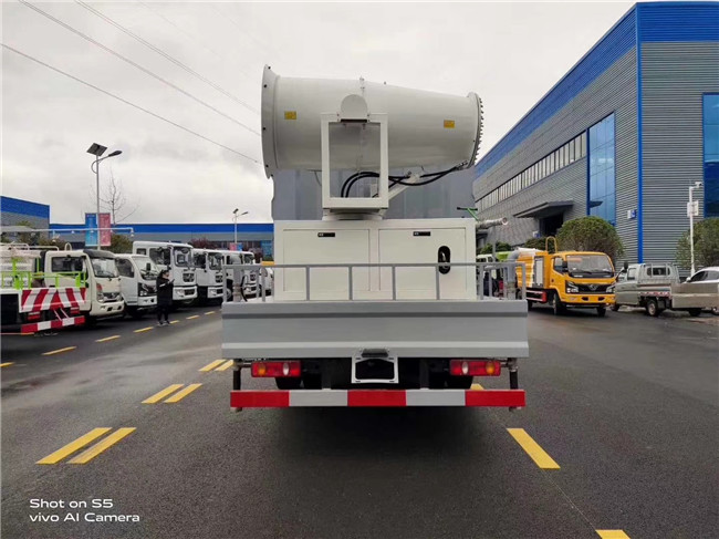 該車帶前沖、后灑、后工作平臺(tái)帶高壓水炮(炮可360度旋轉(zhuǎn),可連續(xù)調(diào)節(jié),噴出柱狀、雨?duì)睢腱F狀水流,柱狀射程28米)、帶大功率環(huán)保除塵風(fēng)送式噴霧機(jī)(噴霧距離可達(dá)40-100米不等,根據(jù)客戶要求選擇配備,噴霧機(jī)具體性能參數(shù)歡迎來(lái)電咨詢)。前置電子自動(dòng)炮,可上下、左右旋轉(zhuǎn),駕駛室控制。前置電子炮,方便駕駛員操作,節(jié)省人力。
